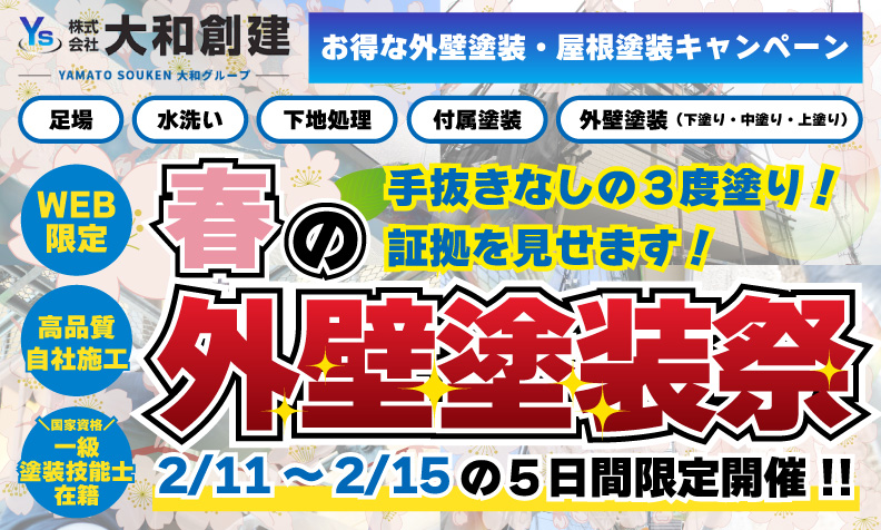 【2/11〜15限定】最大4,000円分特典あり!大和創建「春の外壁塗装祭」開催決定!