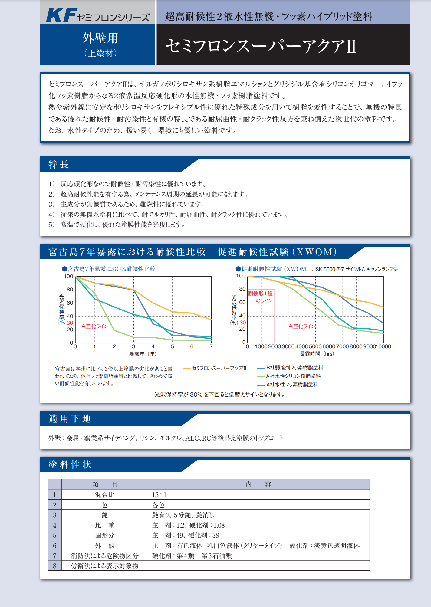 KFケミカル 「セミフロンアクアⅡ」塗料データ